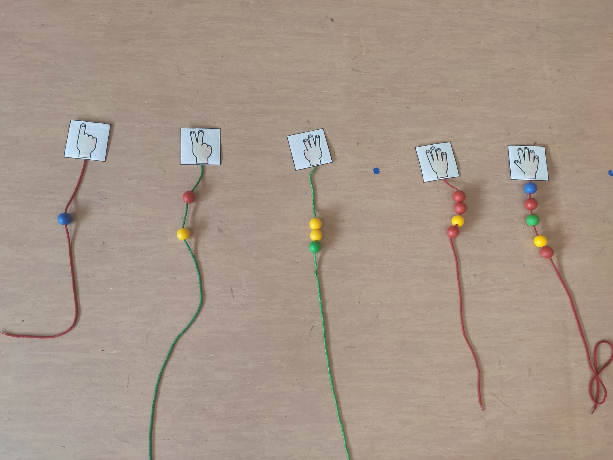 tarjetas que elaboramos para los Juegos con dados, en esta ocasión tendrán que ensartar tantas bolas como dedos/puntos/palos tenga nuestra tarjeta, además