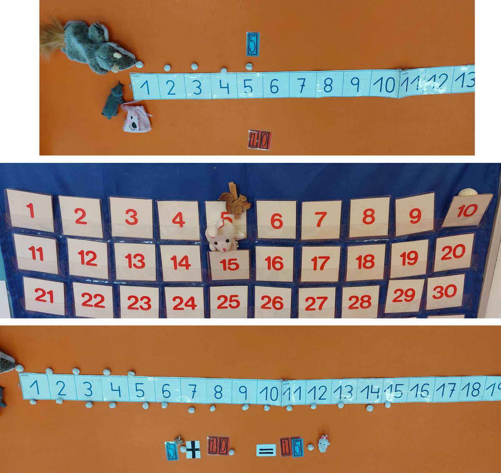 A lo largo del mes de febrero hemos afianzado la secuencia de números de dos en dos, de diez en diez y hemos iniciado el conteo de 5 en 5.
